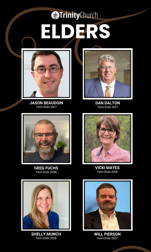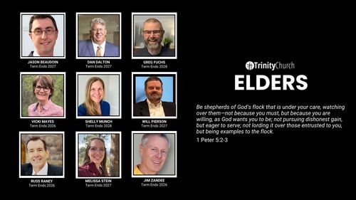 The biblical role of Elders is to provide organizational governance and spiritual oversight for the congregation. Session is governed first by the Evangelical Presbyterian Church Book of Government, followed by the bylaws of Trinity EPC. An Elder’s responsibilities include serving communion, prayer or scripture reading at services, representing the congregation at Presbytery or General Assembly, and partnering with the pastor and staff to carry forward the vision and mission of the church.